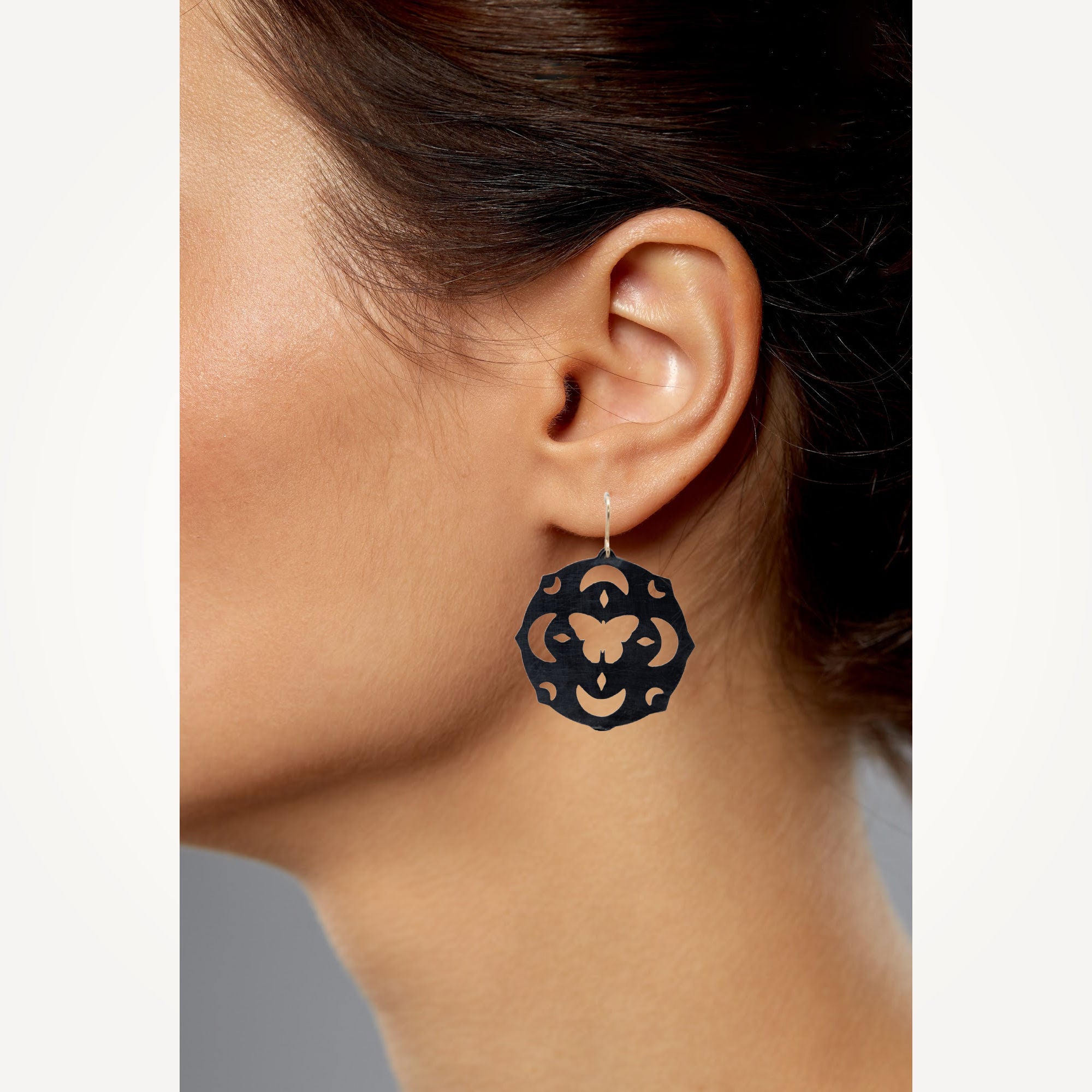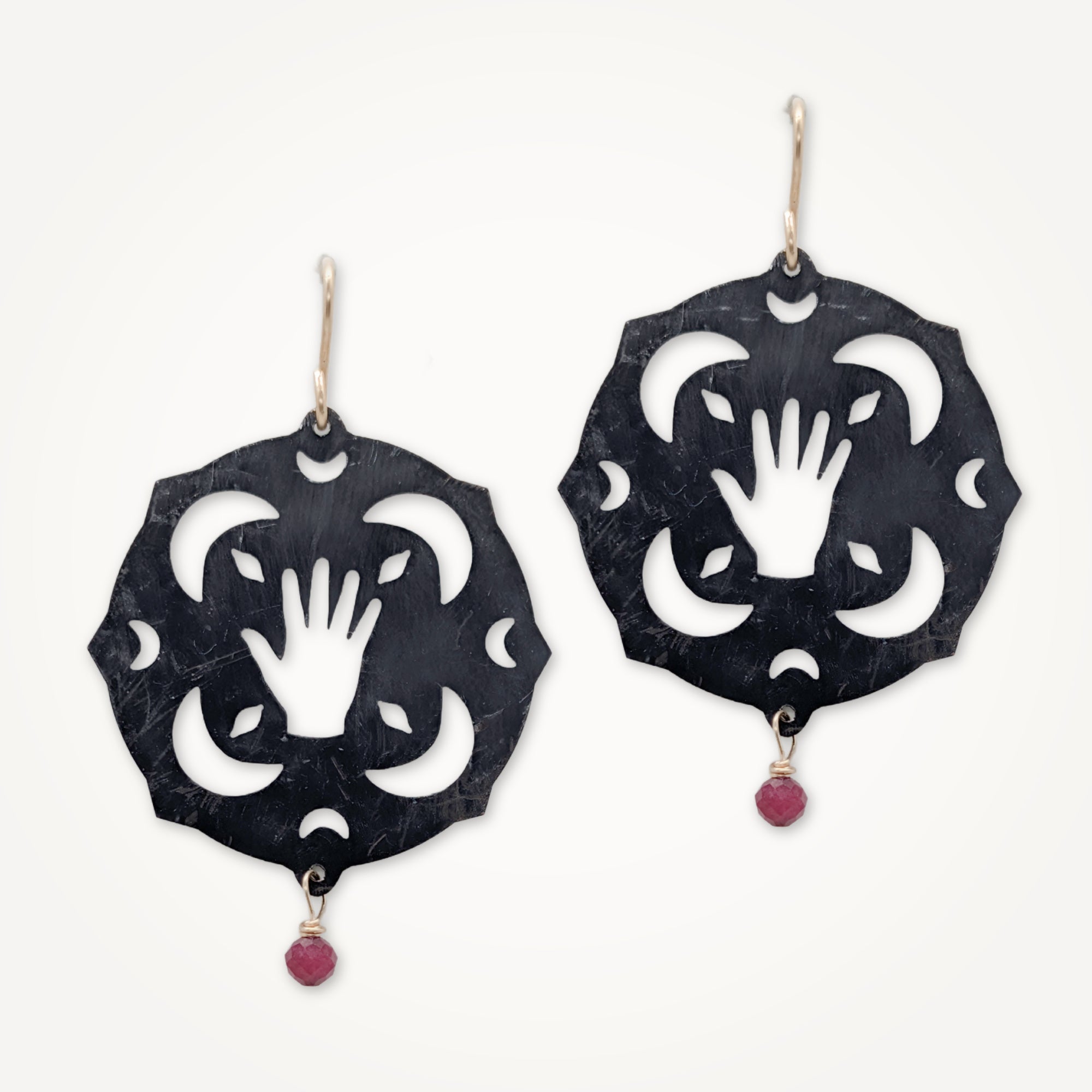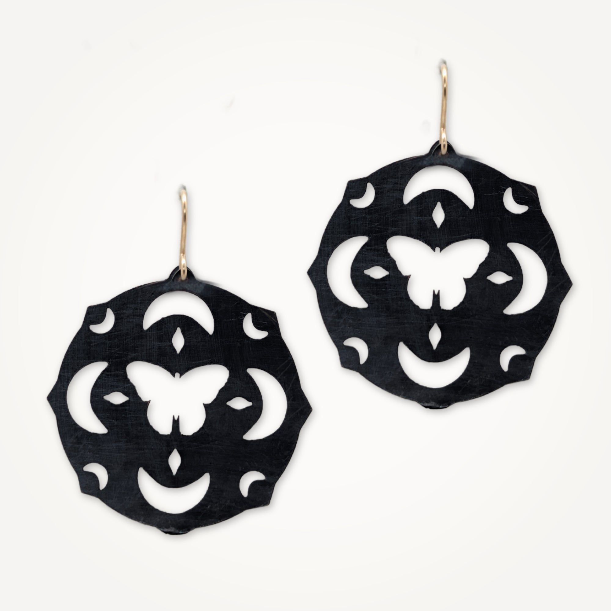 A collection of original sketches transformed into pierced and etched metal. Symbols drawn from nature and imagination become wearable talismans, each piece holding its own story.