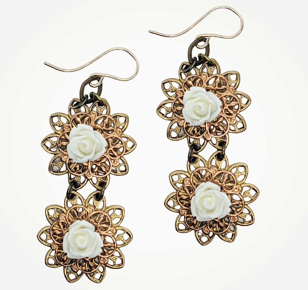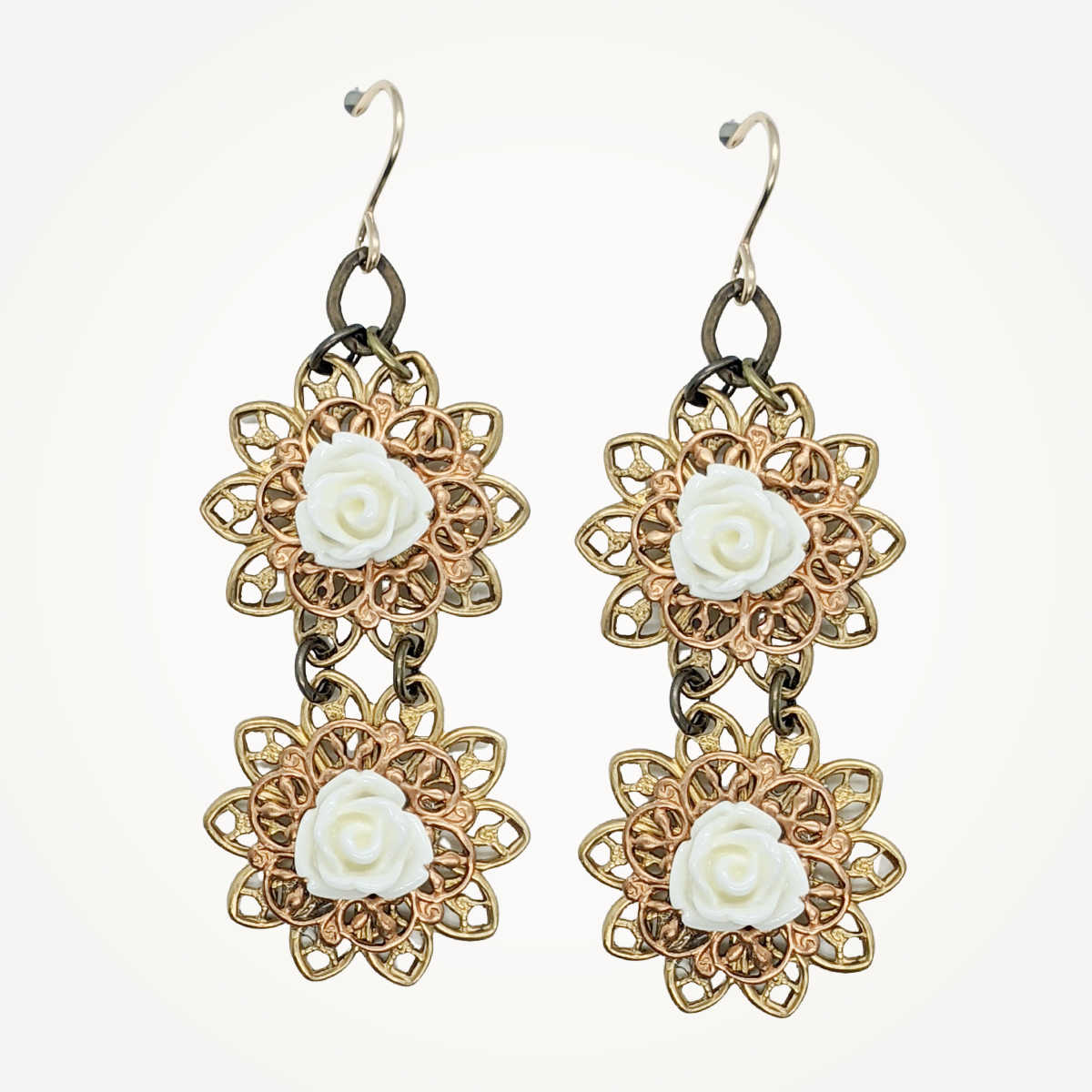 Old world elements and contemporary appeal create our Modern Vintage Jewelry collection. Created with vintage elements, gemstones, and freshwater pearls. Many of the components in this collection are created with the original die stamps from the 1930's.